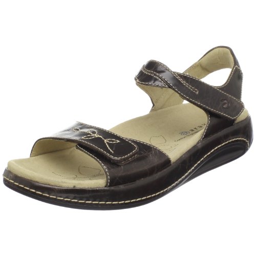 The Aravon Rita is an attractive, comfortable adjustable sandal built upon the Stridarc™ Wedge Rocker sole. Precisely engineered to minimize foot fatigue, this closer-to-the-ground approach to the Rocker sole supports walking comfort every step of the way. Color: Brown